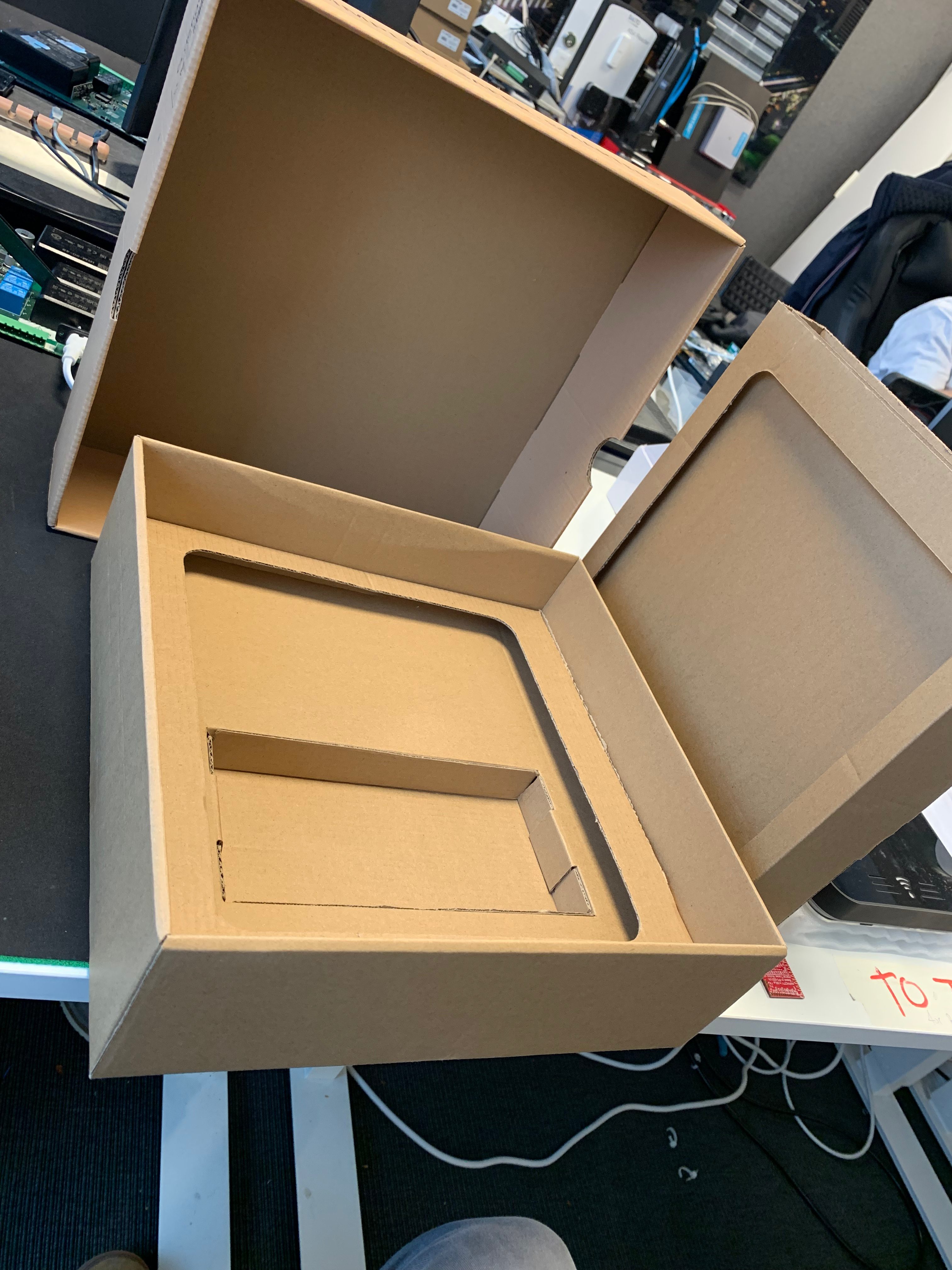 Version 2 of the packaging solution for the Display Box G5.1. Featured an Apple-Style box with cardboard inserts for product protection, increasing the baseline sustainability and shifting towards ESG goals.