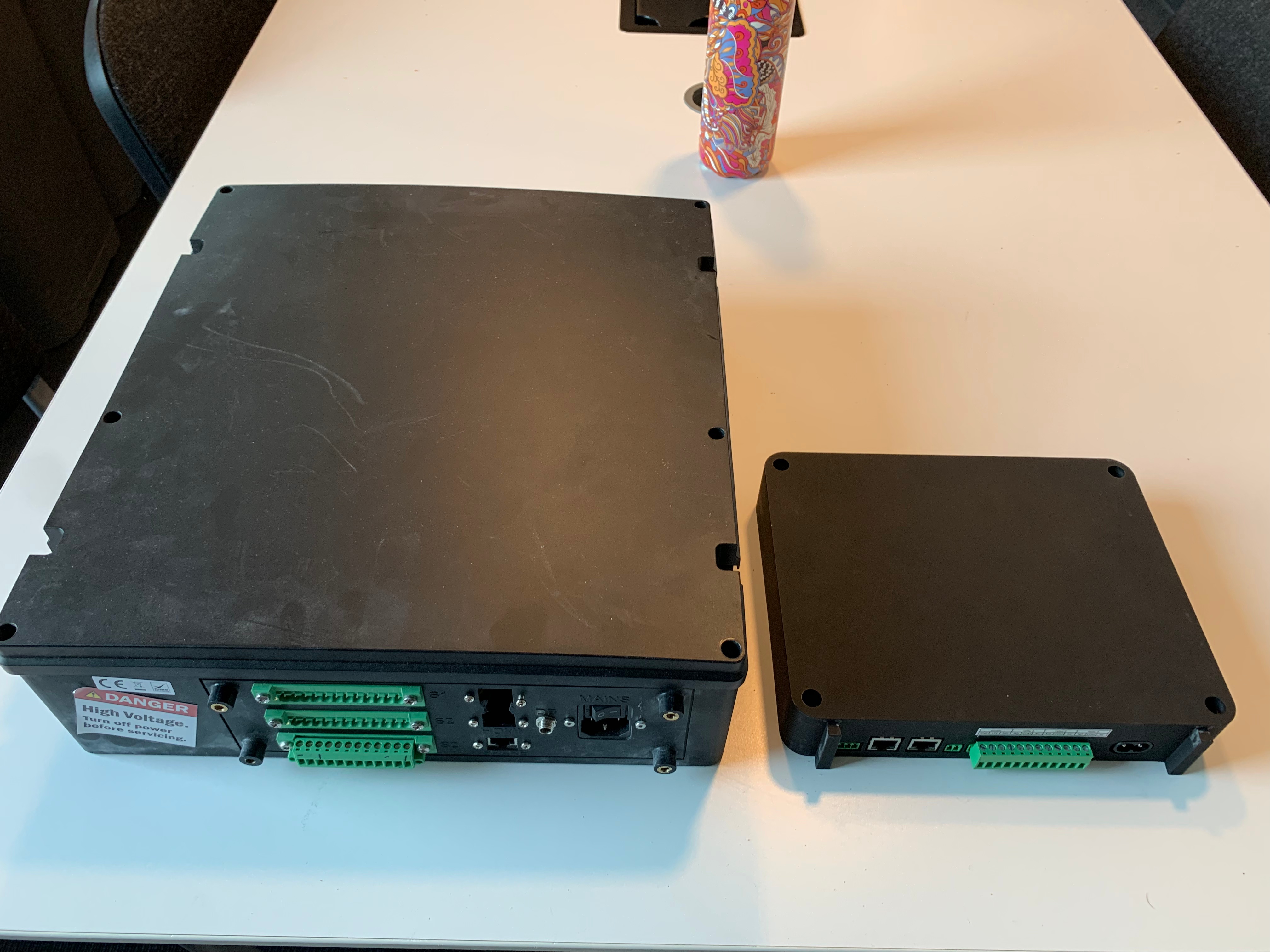 The current Control Box on offer from Defigo. Featuring a simple bolt-through installation method, externally accessible hardware access points for third-party integrations, and a small physical footprint.