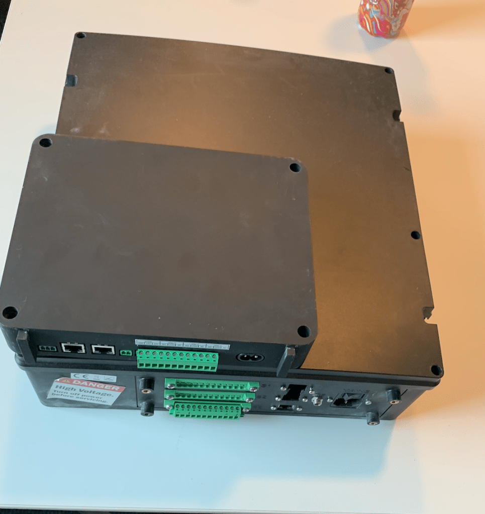 The current generation of the Control Box is easy to install, with external plugs for I/O connectivity and a custom PCB results in a greatly reduced cost and physical footprint over Generation 4. Display Unit connection is reduced to a single cable and can be mounted similar to the Display Unit and had sliding front rails for a cable cover to be attached for increased safety.