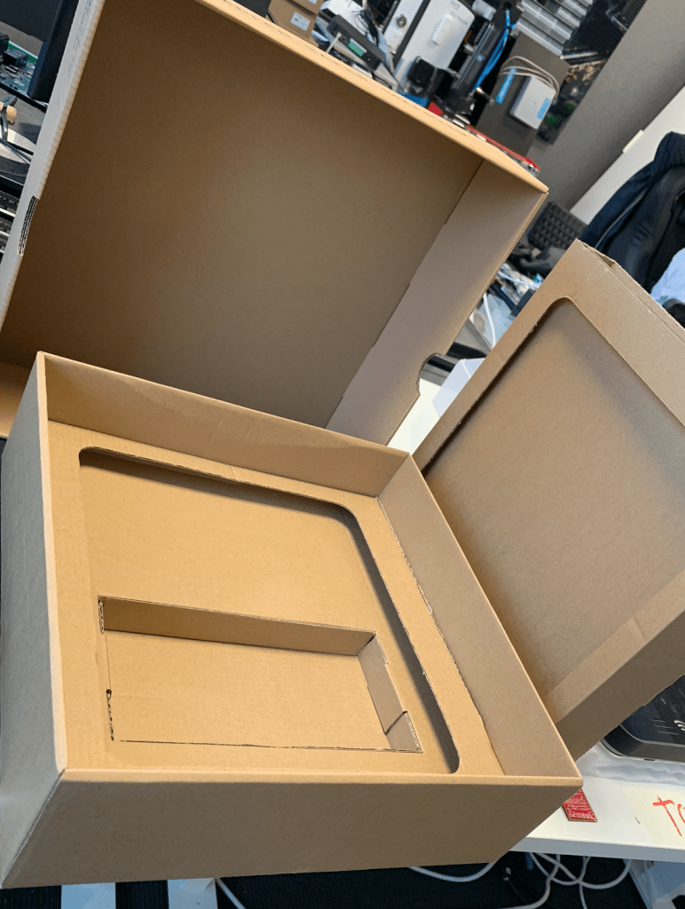 The core product packaging began as an apple style packaging, with a smooth white semi gloss box with a secure foam insert to hold the products. This was effective and sharp however I was concerned with being unable to properly recycle the units due to the materials, both inside and out.